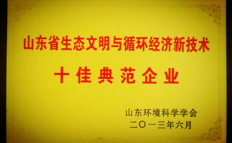山東省生態(tài)文明與循環(huán)經濟新技術十佳典范企業(yè)