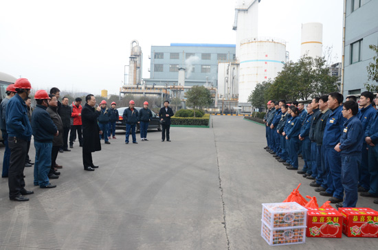 司總帶隊先后來到了控制中心、備煤分廠、甲醇分廠、廠區(qū)南大門崗和物流中心,親切慰問了堅守在工作一線的員工,分別送上節(jié)日慰問品,并對堅守在生產(chǎn)一線的干部職工致以新春的美好祝福。司總講到,2014年公司取得了較好的經(jīng)營業(yè)績,是與每位員工的辛勤付出分不開的,對大家一年來在工作中作出的貢獻(xiàn)表示感謝,并表示下一步公司將會營造更加舒適的工作與生活環(huán)境,讓廣大職工無后顧之憂。司總最后勉勵大家,新的一年要更加努力的工作,使公司各項工作再上新臺階。整個慰問過程充滿了歡樂祥和的氣氛,使大家深受鼓舞。