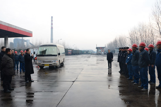 8點50分,司相芳總經(jīng)理帶領(lǐng)公司部分領(lǐng)導(dǎo)來到班車停放處,下夜班的職工列隊鼓掌歡迎。司總發(fā)表了熱情洋溢的新年講話。司總說,在新春佳節(jié)之際,全體員工為了確保節(jié)日期間的安全生產(chǎn),仍然奮斗在生產(chǎn)一線,感謝大家的辛勤工作,祝大家在新的一年里工作順利、合家幸福,萬事如意!