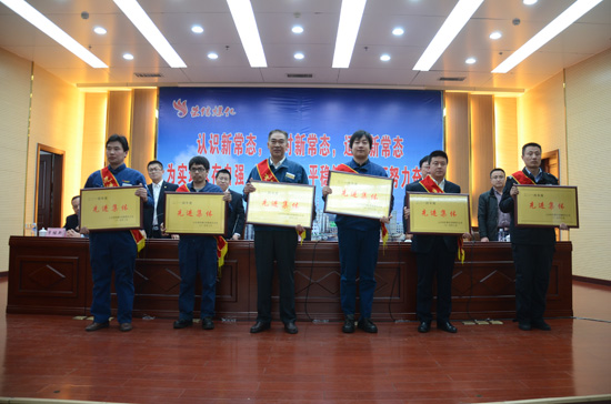 首先,總工程師杜漢雙宣讀了《關(guān)于表彰2014年度先進單位和個人的決定》及獲獎名單。在歡快的樂曲聲中,公司領(lǐng)導(dǎo)為受表彰的先進單位和個人進行了頒獎。