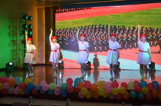 本場文藝晚會以“新常態(tài) 新起點 新發(fā)展”為主題,匯集了歌曲、舞蹈、小品、相聲、三句半、器樂、武術、朗誦、雙簧、豫劇等眾多藝術形式,采用LED大屏幕及現(xiàn)代化的燈光舞美設計,舞臺流金溢彩,視聽火爆震撼,整場演出喜慶熱烈,激情洋溢,恢弘大氣,讓人感受到收獲的喜悅、家庭的溫馨、奮進的力量。最后,文藝晚會在大合唱《明天會更好》的熱烈氛圍中落下帷幕。