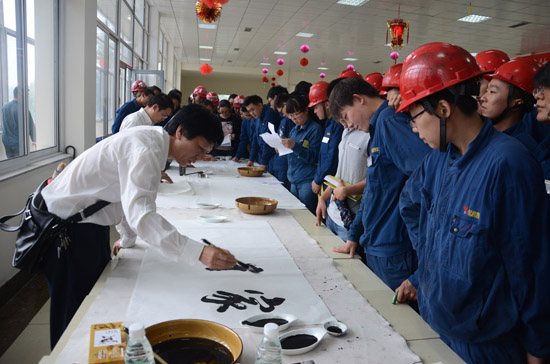 本網(wǎng)訊 6月25日,由鄒城市總工會、市文聯(lián)聯(lián)合舉辦的慶“七一”優(yōu)秀傳統(tǒng)文化進企業(yè)暨職工書畫“百日”巡展活動啟動儀式在山東榮信煤化有限責任公司舉行。副市長吳婧出席并講話,市政協(xié)副主席、市總工會主席姚振西主持儀式,公司副總經(jīng)理高小明代表企業(yè)致辭,相關鎮(zhèn)街、市直部門、基層單位工會負責同志和職工代表共計200余人參加活動。啟動儀式上,公司副總經(jīng)理高小明首先代表企業(yè)致辭,他講到,此次活動旨在讓傳統(tǒng)文化更加貼近企業(yè)、貼近基層、貼近生活,用積極健康的文化藝術鼓舞企業(yè)職工,同時提高企業(yè)品牌文化效應,營造企業(yè)文化氛圍,為企業(yè)與文化之間搭建互動平臺。既弘揚了中華民族傳統(tǒng)藝術,又為企業(yè)增添了文化色彩,為企業(yè)發(fā)展注入新的文化元素,也擴大了書畫藝術在全市的影響力。隨后吳婧副市長向公司頒發(fā)“濟寧市模范職工之家”獎牌,與會領導為企業(yè)代表贈送了《我要學儒學》職工學習讀本。吳婧在講話中指出,職工書畫“百日”巡展的成功舉辦,對于進一步深化優(yōu)秀傳統(tǒng)文化進企業(yè)活動,大力弘揚中華民族優(yōu)秀傳統(tǒng)文化,將起到積極的推動作用。希望全市各級工會繼續(xù)廣泛開展各類職工文化活動,進一步豐富優(yōu)秀傳統(tǒng)文化進企業(yè)載體,引導廣大干部職工從優(yōu)秀傳統(tǒng)文化中汲取營養(yǎng),樹立忠誠、擔當、愛崗、敬業(yè)的職業(yè)操守,推進職工隊伍素質(zhì)全面提升,為建設和諧幸福新鄒城提供強大的文化支撐和精神動力。啟動儀式后,與會人員共同觀看書畫作品展,我市書法家現(xiàn)場潑墨為職工書寫優(yōu)秀傳統(tǒng)文化經(jīng)典名句,現(xiàn)場為職工送出書畫100余幅。據(jù)悉,本次展出的書畫作品接下來還將走進山東宏河礦業(yè)集團、山東圣琪生物有限公司等企業(yè)進行巡展,進一步掀起優(yōu)秀傳統(tǒng)文化進企業(yè)活動的熱潮。