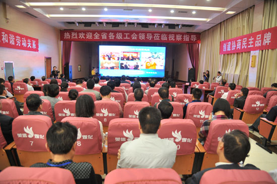 馮慶祿一行參觀了生產(chǎn)廠區(qū),對我公司的規(guī)范生產(chǎn)、高效管理、文化積淀、廠區(qū)環(huán)境和員工素質(zhì)給予高度贊揚(yáng)。隨后,與會人員來到職工之家觀看了企業(yè)文化圖片展,參觀了職工乒乓球室、職工書屋、職工健身房、職工超市等,查閱了公司工資集體協(xié)商文書記錄檔案,最后來到多功能廳觀看了公司題為“積極主動協(xié)商 真情善待員工 構(gòu)建和諧幸福榮信”的多媒體工作匯報。通過現(xiàn)場參觀、實(shí)地查看和聽取匯報,與會人員一致認(rèn)為,榮信煤化積極主動進(jìn)行工資集體協(xié)商成效顯著,推動了協(xié)商共謀、機(jī)制共建、效益共創(chuàng)、利益共享,為構(gòu)建和諧幸福榮信打下了良好的基礎(chǔ)。公司構(gòu)建和諧幸福榮信的做法內(nèi)涵豐富,成效扎實(shí),公司依靠員工辦企業(yè),依法維權(quán)、構(gòu)建和諧,形成了良好的勞資關(guān)系、勞動關(guān)系。通過發(fā)揮工會作用、暢通民主管理主渠道、履行工會維護(hù)的職能、開展寓教于樂的活動、建設(shè)企業(yè)文化等,員工的積極性、創(chuàng)造性充分調(diào)動起來,增強(qiáng)了企業(yè)的凝聚力、向心力,實(shí)現(xiàn)了職工體面勞動、舒心工作、快樂生活,企業(yè)長遠(yuǎn)健康發(fā)展互惠共贏的良好局面。