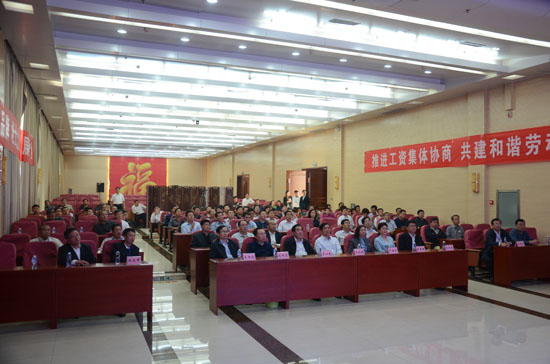 本網(wǎng)訊 10月14日,省總工會副主席馮慶祿帶領(lǐng)全省工資集體協(xié)商工作現(xiàn)場推進(jìn)會與會人員,來公司檢查指導(dǎo)工作。濟(jì)寧市人大常委會副主任、市總工會主席羅心光,濟(jì)寧市總工會黨組書記、常務(wù)副主席岳秀銀,鄒城市委副書記朱瑞顯,市政協(xié)副主席、市總工會主席姚振西,公司總經(jīng)理司相芳、副總經(jīng)理高小明等陪同。全省各地市總工會分管負(fù)責(zé)人,法律工作部長,省產(chǎn)業(yè)工會、大企業(yè)工會、省直機(jī)關(guān)工會負(fù)責(zé)人近百人參加。