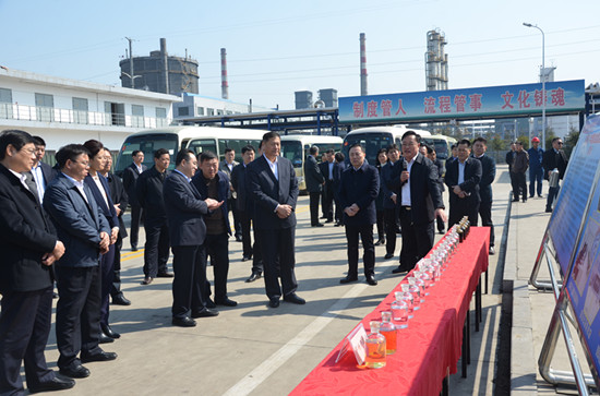 王宏偉一行參觀了集團(tuán)子公司恒信科技中控室和榮信煤化生產(chǎn)廠區(qū),聽取了集團(tuán)總工程師杜漢雙關(guān)于恒信科技建設(shè)投產(chǎn)、主要產(chǎn)品及榮信煤化生產(chǎn)經(jīng)營等方面的情況介紹。王書記對于集團(tuán)近幾年快速發(fā)展取得的成績給予了高度評價(jià),考察團(tuán)一致認(rèn)為集團(tuán)近幾年積極適應(yīng)經(jīng)濟(jì)發(fā)展新常態(tài),在安全環(huán)保、生產(chǎn)經(jīng)營、隊(duì)伍建設(shè)、后勤保障等方面工作亮點(diǎn)突出,在煤化工行業(yè)領(lǐng)域樹立了典范。下步將加強(qiáng)兗州本地企業(yè)與集團(tuán)的溝通、聯(lián)系和交流,共同推進(jìn)兩地經(jīng)濟(jì)社會健康和諧發(fā)展。