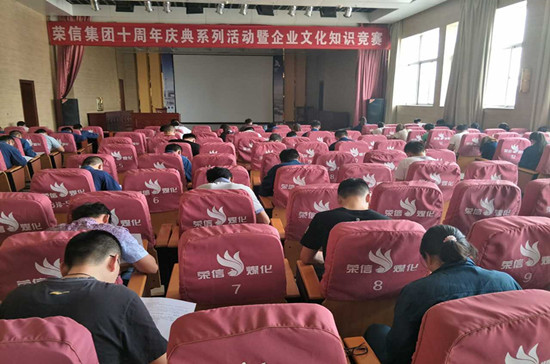 6月27日下午,為慶祝榮信煤化成立十周年,集團(tuán)在多功能會(huì)議室組織開展了企業(yè)文化知識(shí)競(jìng)賽,來自集團(tuán)20個(gè)部門123名員工參加考試。