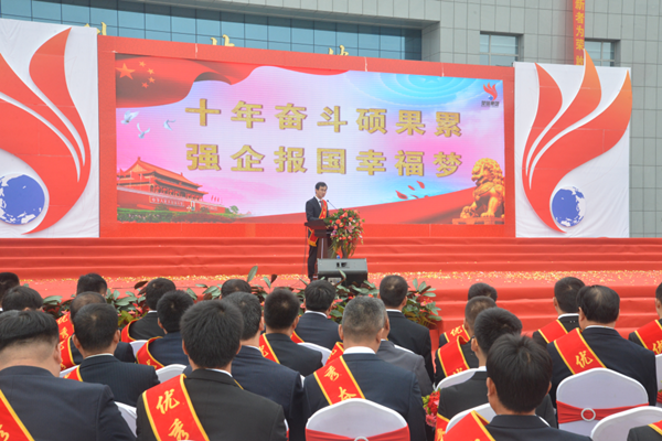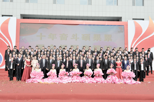 為十九大錦上添花,為中國(guó)夢(mèng)增光添彩,為奮斗者加油,為優(yōu)秀奮斗者點(diǎn)贊。10月18日上午10:00,乘著十九大勝利召開(kāi)的東風(fēng),榮信建業(yè)十周年慶典大會(huì)在科技樓前隆重舉行。整個(gè)慶典現(xiàn)場(chǎng)氣氛熱烈高昂,場(chǎng)面宏大喜慶。榮信集團(tuán)領(lǐng)導(dǎo),各部室、分廠、中心、子公司中層管理人員,特邀嘉賓及員工家屬代表,百名優(yōu)秀奮斗者及各部門(mén)員工代表共1000余人參加了慶典活動(dòng)。