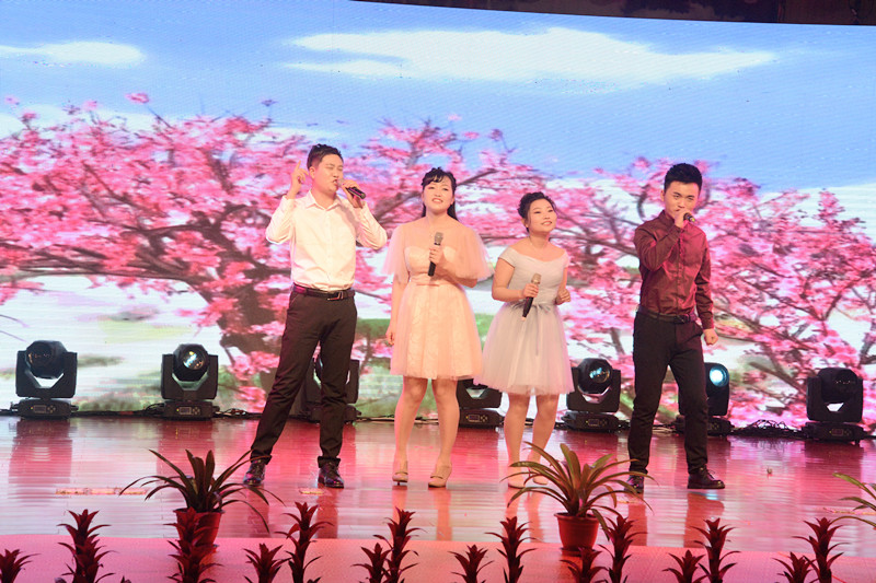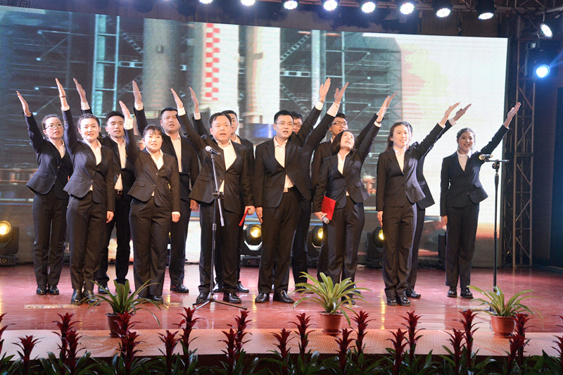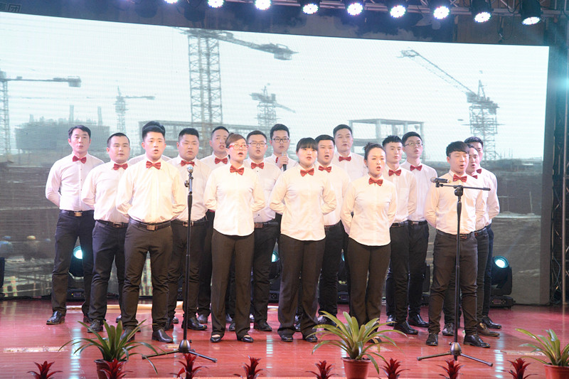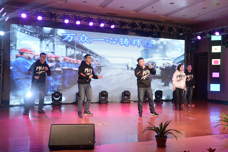 晚會(huì)以“新時(shí)代、新?lián)?dāng)、新發(fā)展”為主題,形式多樣、內(nèi)容豐富、精彩紛呈。晚會(huì)以激情高昂大氣的歌伴舞《陽光路上》拉開了帷幕。隨后歌曲《中國范兒》、《冰糖葫蘆》、《站在草原望北京》、《年輕的朋友來相會(huì)》等表演,熱情謳歌了新時(shí)代新生活新夢(mèng)想。琵琶重奏《送我一支玫瑰花》、喊麥《夢(mèng)想起航》、三句半《贊榮信》、熒光舞《舞動(dòng)激情》、群口相聲《誰的功勞大》、小品《榮信情緣》等節(jié)目,給觀眾帶來了耳目一新的視聽享受,贏得現(xiàn)場觀眾的陣陣掌聲。最后,晚會(huì)在激情昂揚(yáng)的歌曲《不忘初心》中圓滿落下帷幕。演出結(jié)束后,總經(jīng)理司相芳、副總經(jīng)理高小明、總工程師杜漢雙、副總經(jīng)理李繼新等集團(tuán)領(lǐng)導(dǎo)上臺(tái)與演職人員親切握手并合影留念,共同祝賀晚會(huì)取得圓滿成功。