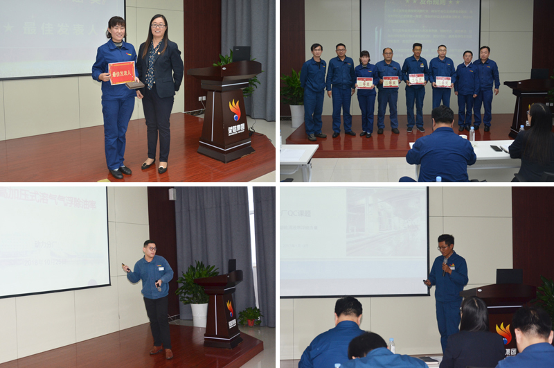 參選的QC課題緊緊圍繞生產(chǎn)技術(shù)改造、檢維修費用縮減、環(huán)保設(shè)施升級等難題展開調(diào)研和改善。經(jīng)過講演人員的細致解說,評審小組對各項成果進行現(xiàn)場點評。最終,動力分廠發(fā)布的《提高加壓式溶氣氣浮除油率》、恒信科技發(fā)布的《提高產(chǎn)品精制的生產(chǎn)能力》斬獲一等獎,備煤分廠發(fā)布的《縮短細粉碎機開車時間》等QC課題榮獲二等獎,甲醇分廠講解人常慶英獲得“最佳發(fā)表人”獎。