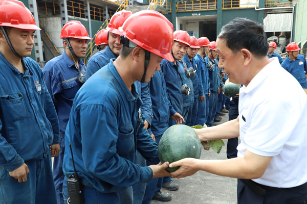 為關(guān)心員工身體健康,有效預(yù)防高溫中暑,確保大家全身心地投入到安全生產(chǎn)工作中去,6月18日,集團工會聯(lián)合辦公室、人力資源部、審計監(jiān)察部等部門深入到保衛(wèi)部、備煤分廠、機焦分廠、恒信科技等一線開展了“高溫送清涼”活動,帶去了組織的關(guān)懷與慰問,感謝大家在高溫下任勞任怨、兢兢業(yè)業(yè)、埋頭苦干,對他們表現(xiàn)出的良好榮信精神風(fēng)貌表示贊揚和敬意。
