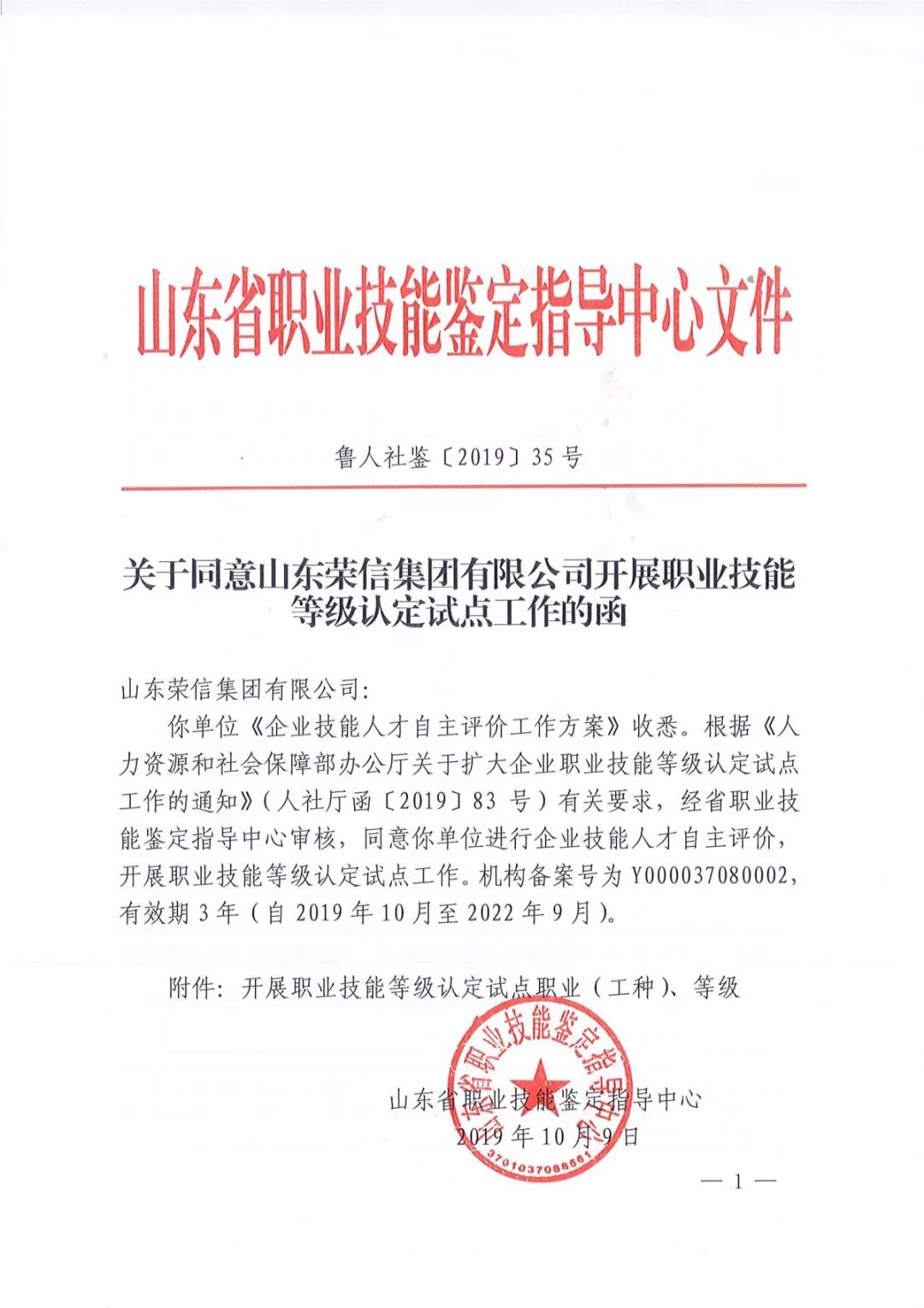 把技能人才評(píng)價(jià)權(quán)“放”給企業(yè),山東省企業(yè)技能人才自主評(píng)價(jià)試點(diǎn)落地。近日,山東省人力資源社會(huì)保障廳開展了首批試點(diǎn)企業(yè)遴選備案工作,確定34家企業(yè)為山東省首批企業(yè)技能人才自主評(píng)價(jià)試點(diǎn)單位,山東榮信集團(tuán)成功入選。據(jù)悉,在首批34家備案的試點(diǎn)企業(yè)中,其中,濟(jì)寧入選3家,山東榮信集團(tuán)是濟(jì)寧市唯一入選的民營企業(yè)。入選企業(yè)將由省人力資源社會(huì)保障廳賦予評(píng)價(jià)機(jī)構(gòu)備案碼,可根據(jù)備案時(shí)提交的評(píng)價(jià)方案,選擇符合企業(yè)實(shí)際的評(píng)價(jià)內(nèi)容、評(píng)價(jià)方式,對(duì)本企業(yè)職工開展技能人才自主評(píng)價(jià)。對(duì)自主評(píng)價(jià)合格的職工,由企業(yè)自行發(fā)放職業(yè)技能等級(jí)證書;頒發(fā)職業(yè)技能等級(jí)證書的合格人員信息,按程序錄入山東省技能人才數(shù)據(jù)庫,享受相關(guān)待遇。集團(tuán)本次獲得的職業(yè)技能等級(jí)認(rèn)定試點(diǎn)職業(yè)(工種)為“化工總控工”和“化學(xué)檢驗(yàn)員”,技能等級(jí)分別從初級(jí)到高級(jí)技師(5—1級(jí))。