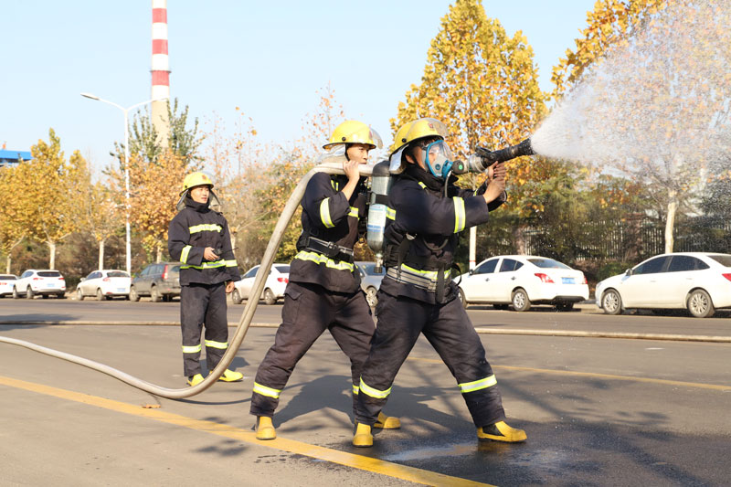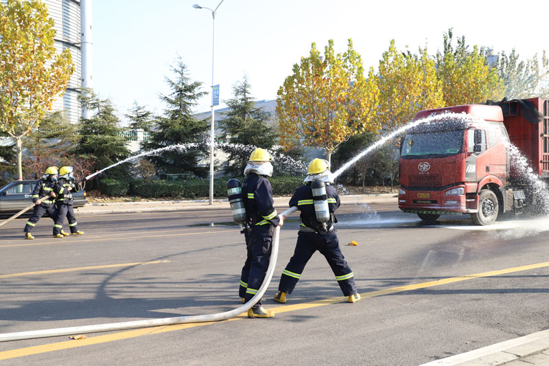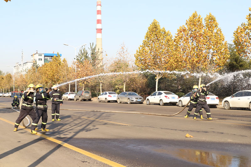 集團(tuán)副總經(jīng)理高小明,生產(chǎn)計(jì)劃部、安環(huán)部、各分廠、部室主要負(fù)責(zé)人等20余人親臨現(xiàn)場進(jìn)行觀摩指導(dǎo)。保衛(wèi)部40多人參加演練。下午14時(shí),練兵正式開始,在保衛(wèi)部副部長王文廣指揮下,首先開展了車輛著火事故消防應(yīng)急演練,消防指戰(zhàn)員以最快的速度趕赴現(xiàn)場處置,根據(jù)現(xiàn)場情況,下達(dá)作戰(zhàn)命令,明確任務(wù)分工,經(jīng)過5分鐘的緊張?zhí)幹茫饎輷錅?,消防演?xí)結(jié)束。