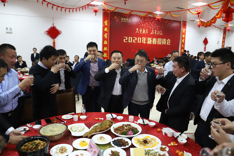 山東恒信集團董事長、山東榮信集團總經(jīng)理司相芳在招待會上發(fā)表熱情洋溢的致辭。他首先向大家致以節(jié)日的問候和美好祝福,向堅守工作崗位的各位員工表示親切的慰問!他說,2019年是極不平凡的一年,經(jīng)濟復蘇緩慢,對煤化工行業(yè)的沖擊很大,生產(chǎn)形勢非常嚴峻。我們戰(zhàn)勝各種挑戰(zhàn),堅持走綠色循環(huán)發(fā)展之路,大力實施新舊動能轉(zhuǎn)換,著力轉(zhuǎn)型升級,持續(xù)加大投入,進行多項大型節(jié)能環(huán)保技改工程,保持了同行業(yè)最好水平,新獲地方、行業(yè)的諸多殊榮,是新型煤化工高質(zhì)量發(fā)展的標桿企業(yè)與能效領(lǐng)跑者。他表示,展望2020年,各種不確定因素增多,煤化工企業(yè)面臨的困難更加復雜多變。企業(yè)只有壯大規(guī)模,提質(zhì)增效,才能在瞬息萬變的競爭中行穩(wěn)致遠。積極爭取發(fā)展要素,全面鋪開新能源新材料建設(shè)項目,再謀發(fā)展,再上規(guī)模,延伸產(chǎn)業(yè)鏈條,大力發(fā)展綠色循環(huán)經(jīng)濟,加快新舊動能轉(zhuǎn)換,繼續(xù)領(lǐng)跑,做綠色高質(zhì)量發(fā)展的行業(yè)標桿。他希望大家,在新的一年里,要以“今天再晚也是早,明天再早也是晚”的緊迫感,拉高標桿勇爭先,擼起袖子加油干,在增量增效、提質(zhì)增效、降本增效上“當標桿”,在工作創(chuàng)新上“做表率”,在成長成才上“做標兵”,在業(yè)績比拼立功創(chuàng)模上“扛紅旗”,共創(chuàng)集團更加輝煌美好的明天!