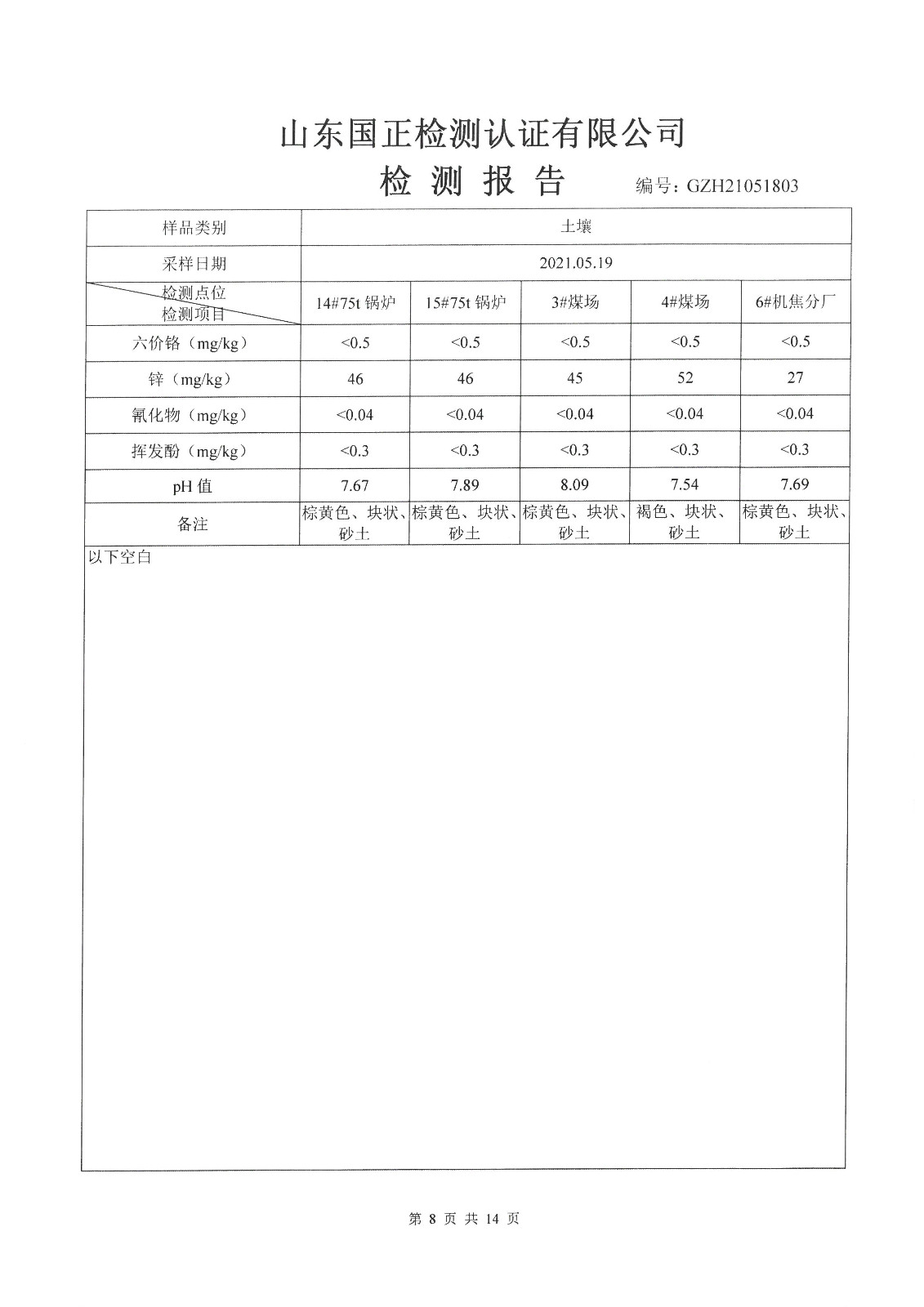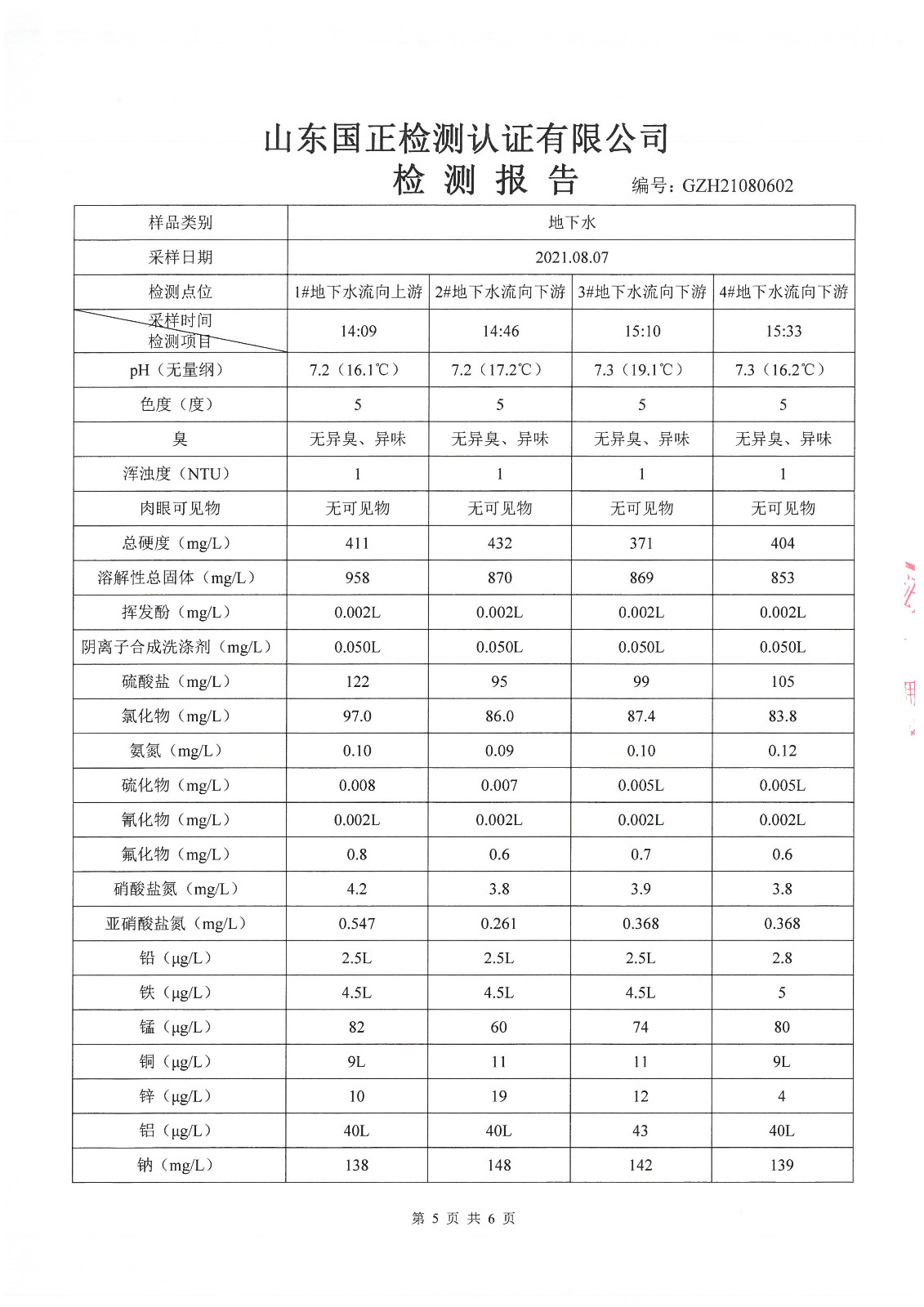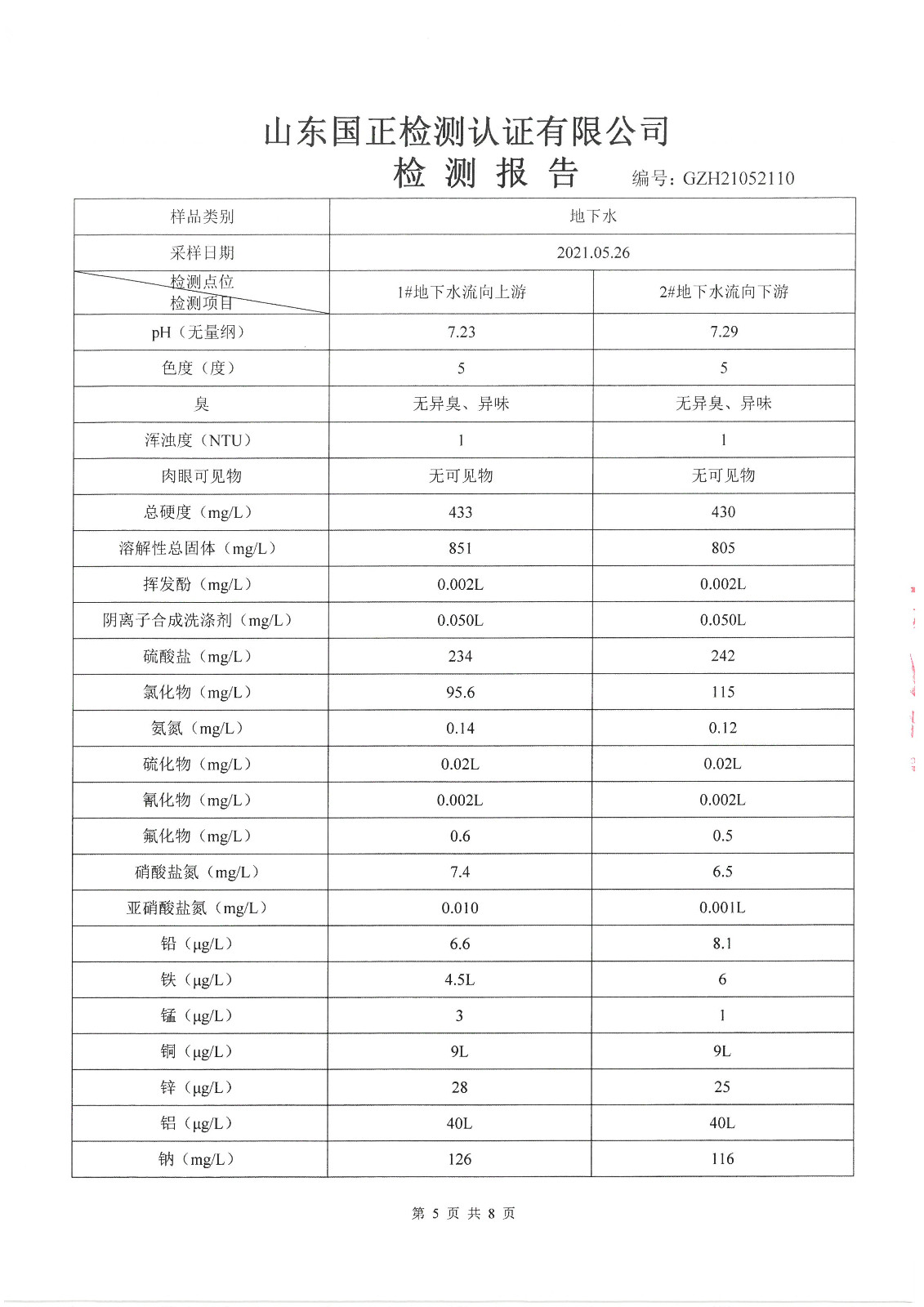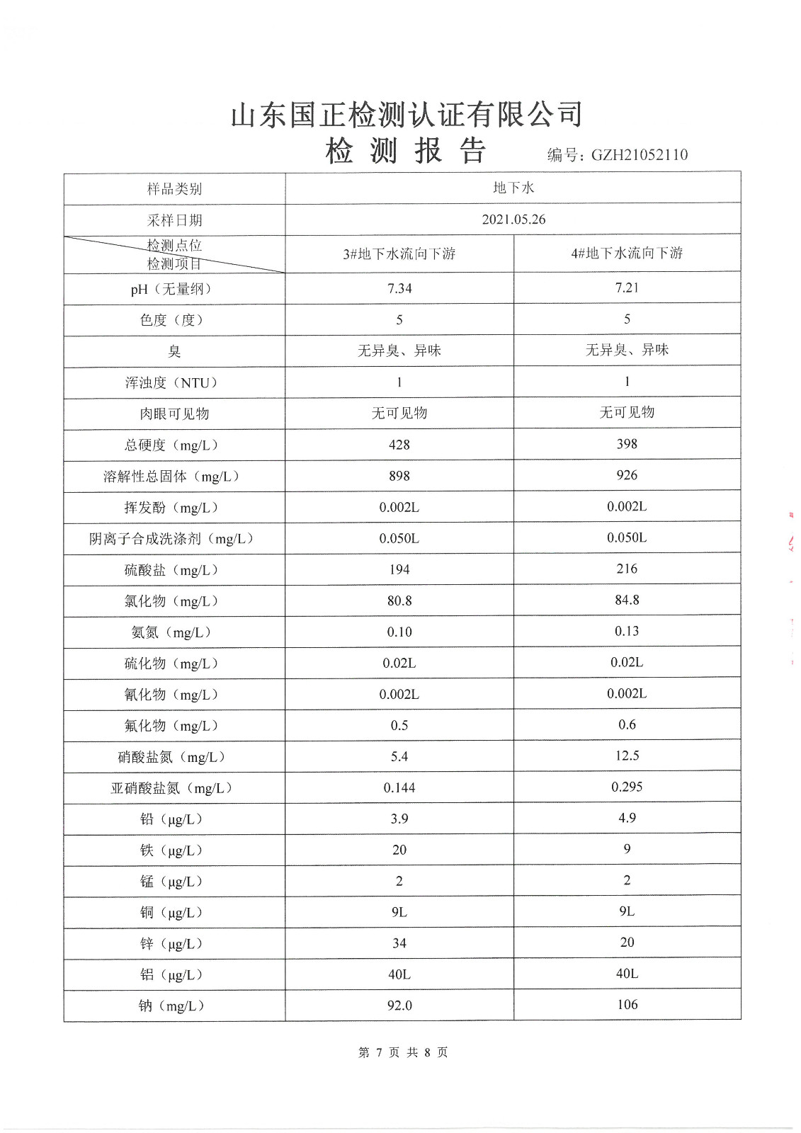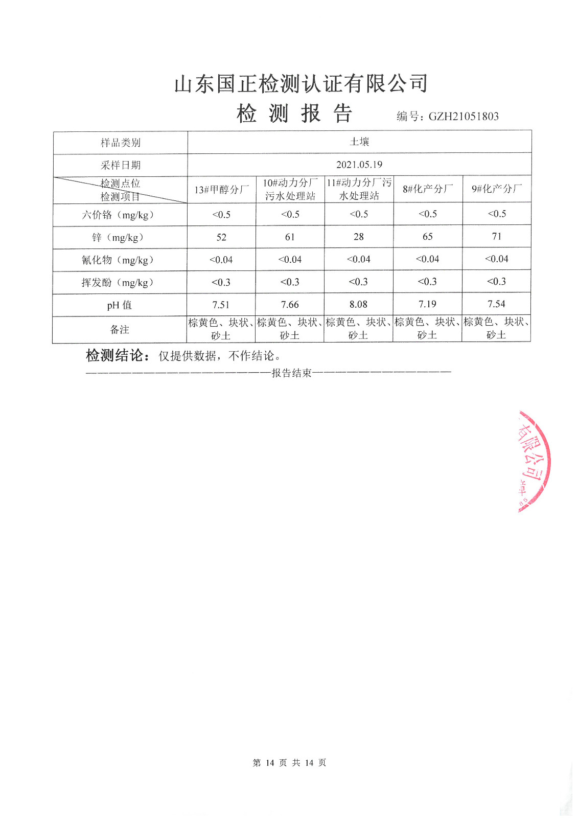 2021年5月、8月份,我公司委托山東國(guó)正檢測(cè)認(rèn)證有限公司依據(jù)《土壤及地下水自行監(jiān)測(cè)方案》進(jìn)行了一次土壤及兩次地下水(枯水期、豐水期各一次)現(xiàn)場(chǎng)采樣,目前對(duì)方已出具了監(jiān)測(cè)報(bào)告,現(xiàn)將監(jiān)測(cè)結(jié)果公告如下(見(jiàn)附件):