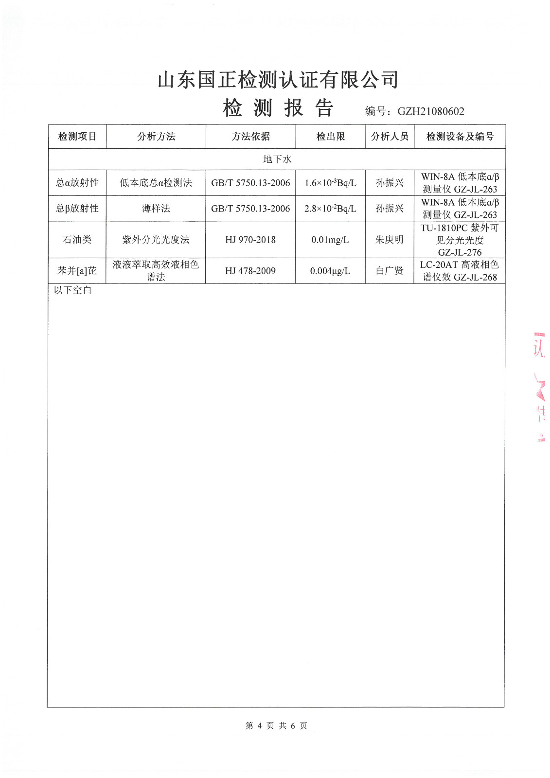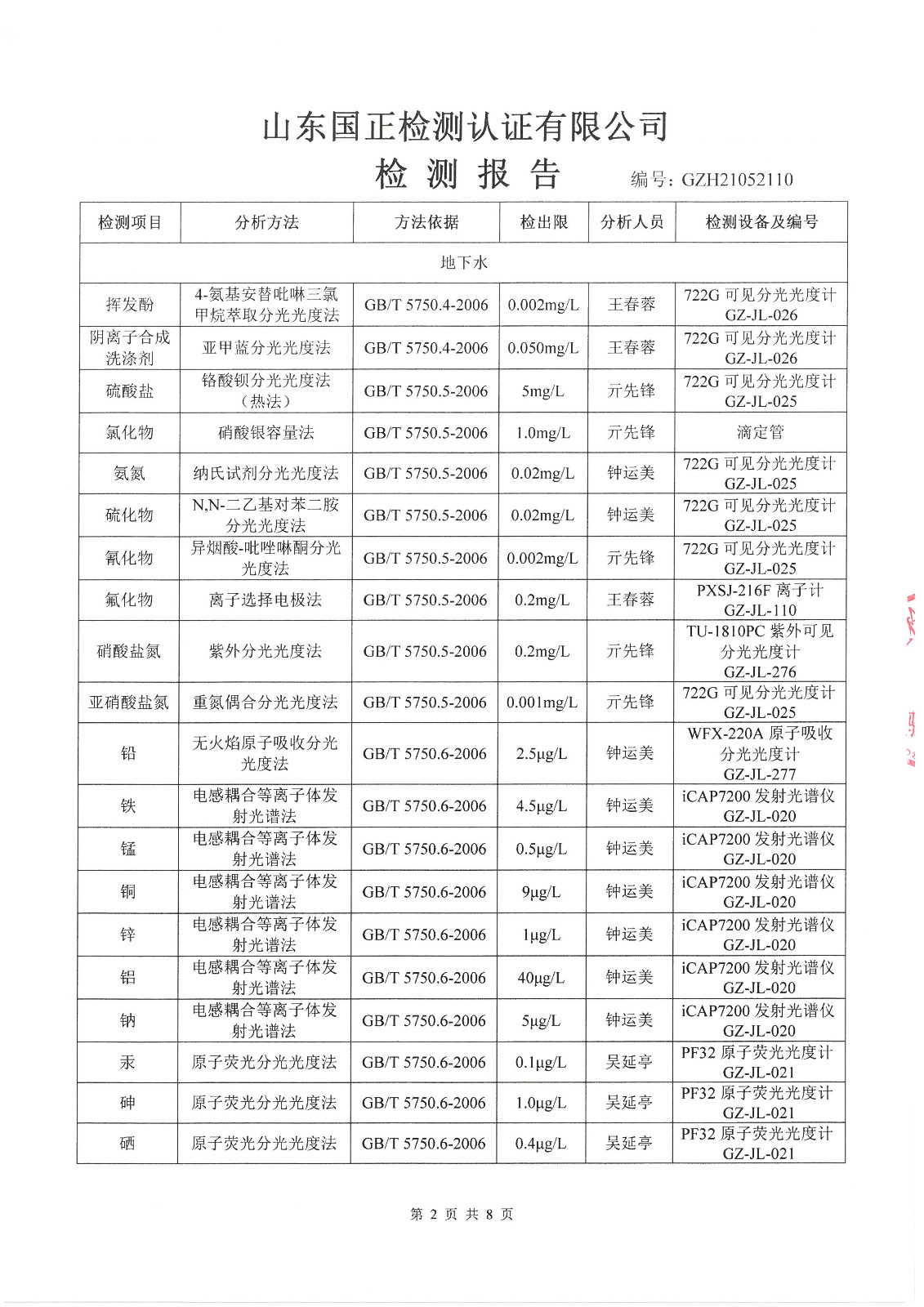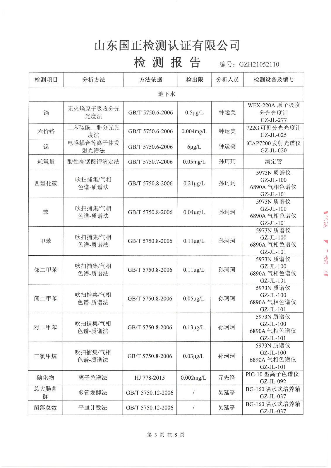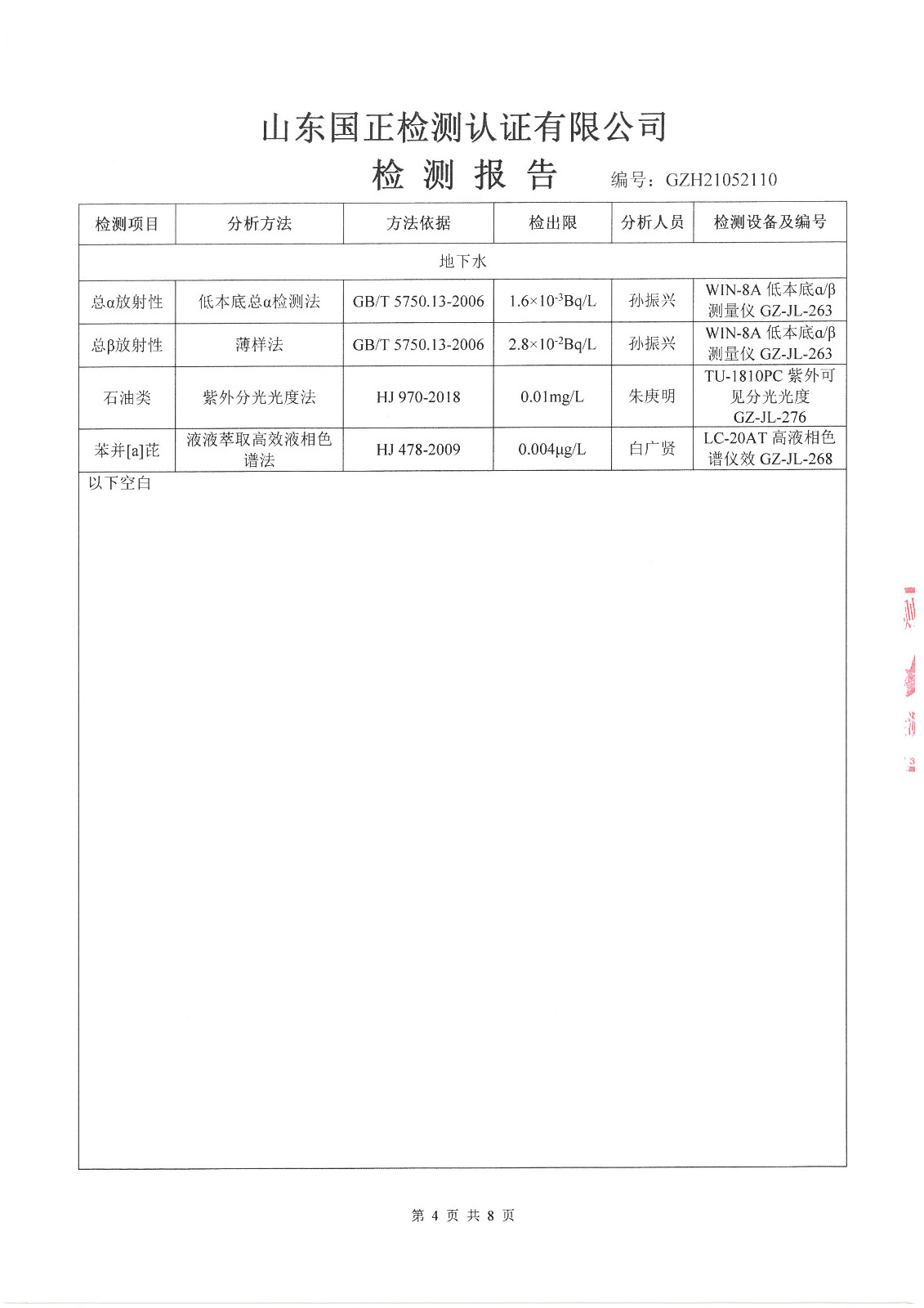 2021年5月、8月份,我公司委托山東國(guó)正檢測(cè)認(rèn)證有限公司依據(jù)《土壤及地下水自行監(jiān)測(cè)方案》進(jìn)行了一次土壤及兩次地下水(枯水期、豐水期各一次)現(xiàn)場(chǎng)采樣,目前對(duì)方已出具了監(jiān)測(cè)報(bào)告,現(xiàn)將監(jiān)測(cè)結(jié)果公告如下(見(jiàn)附件):